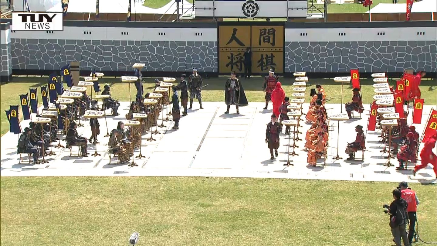 将棋駒の産地・天童市で「人間将棋」開催 満開の…