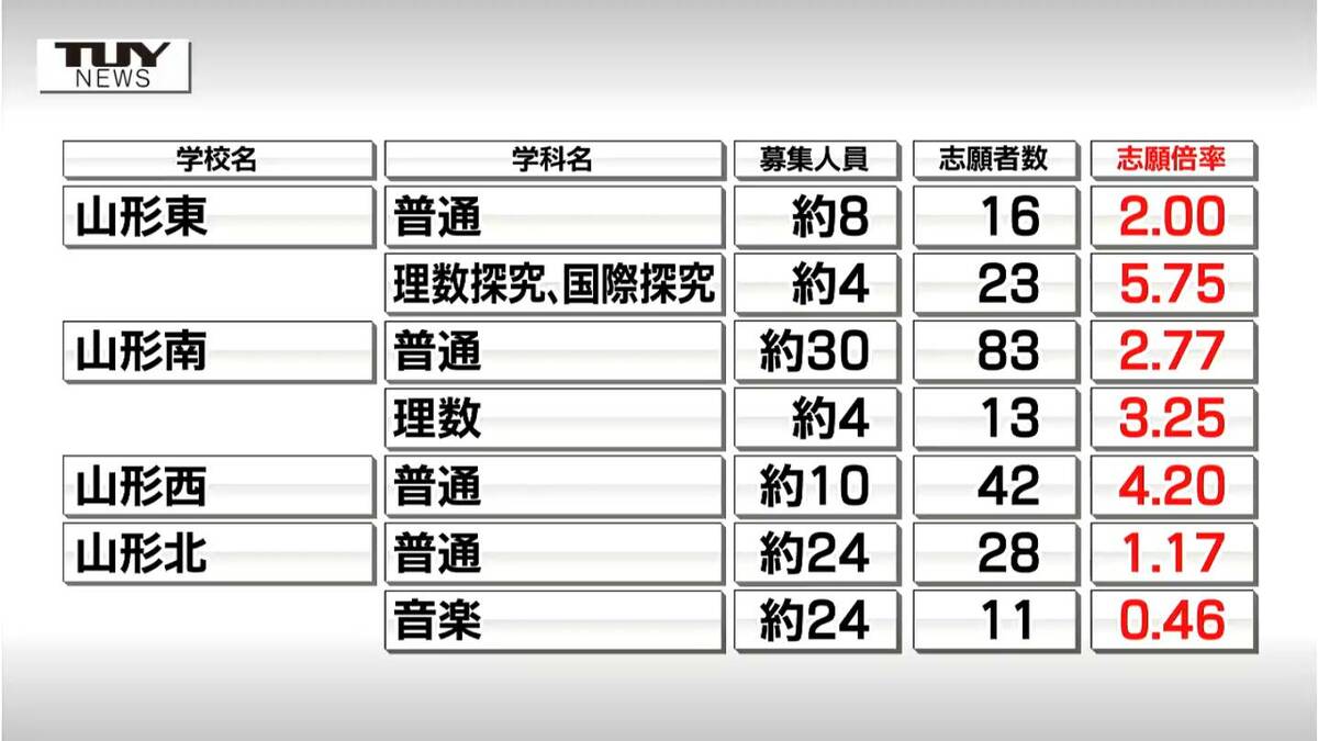 【画像掲載】全高等学校の志願倍率はこれだ 山形…