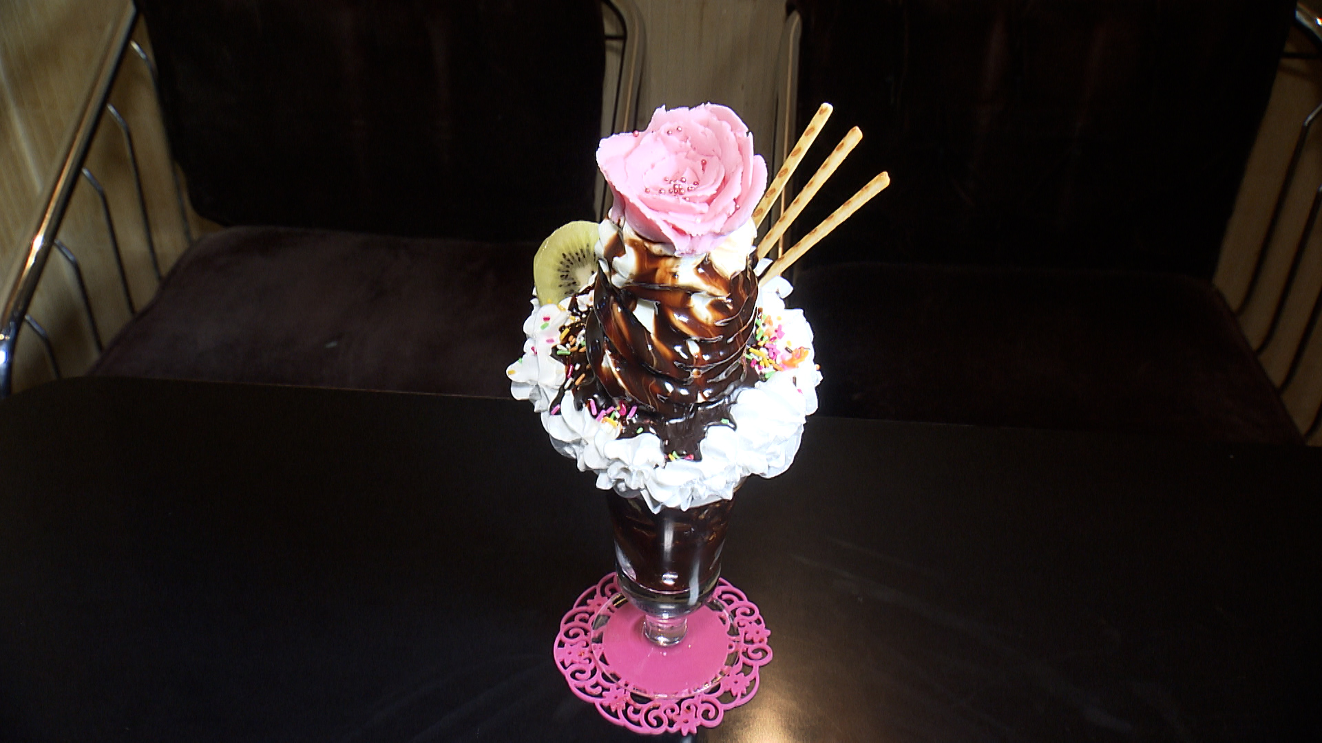 さらにはとってもキュートなお母さんが作る巨大なパフェも!?